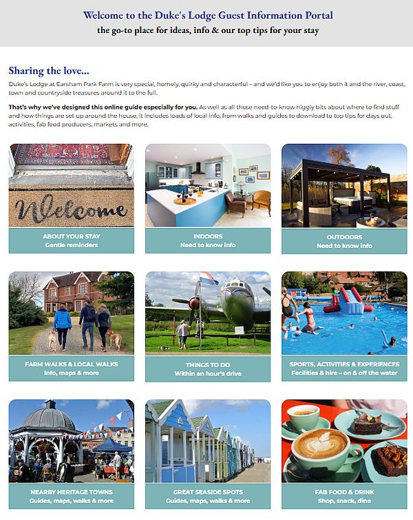 Our local information / about your stay pages – accessible only to guests who have fully confirmed their stay at Duke’s Lodge.